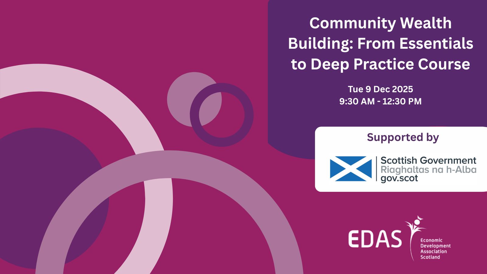 REGISTER NOW   Community Wealth Building (CWB) is growing in Scotland and globally, and this course has been designed as the definitive course for anyone curious, wanting to know more, […]